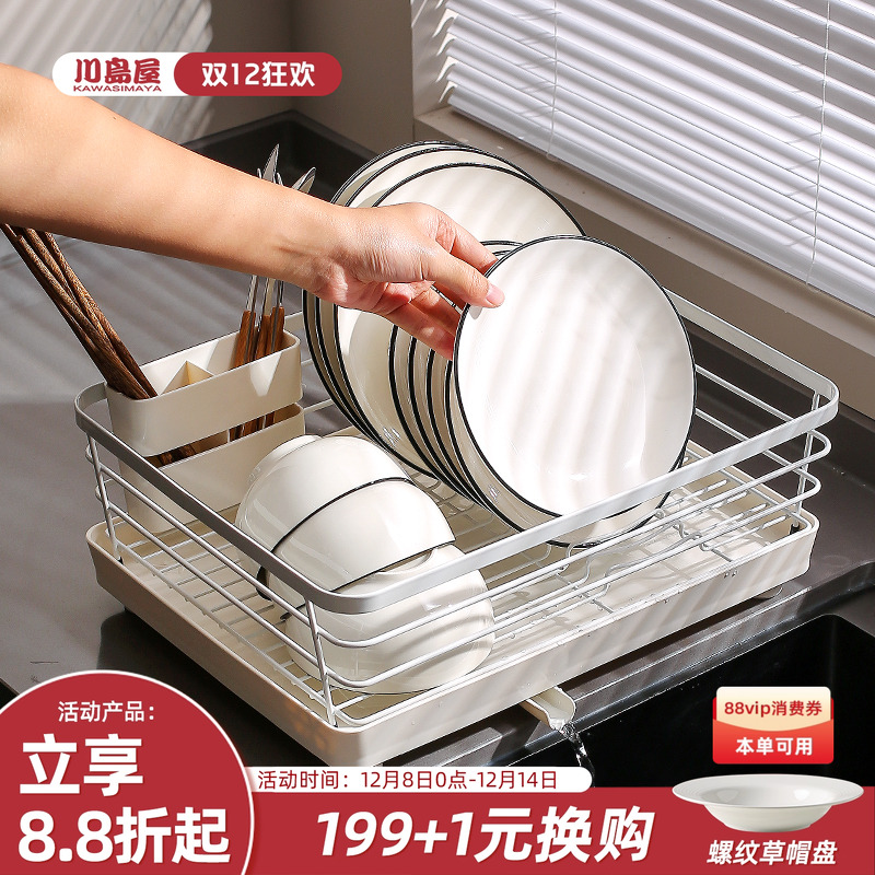 川岛屋碗碟收纳架沥水碗架家用2025新款厨房台面放碗盘碗筷置物架
