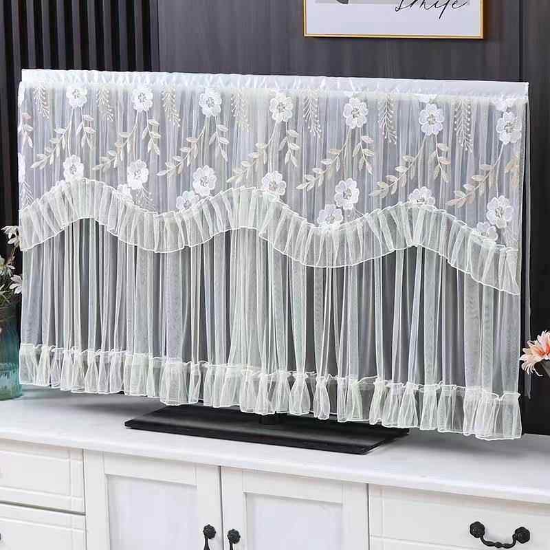 电视机防尘罩55寸65寸75寸电视罩防尘套罩蕾丝绣花电视防尘布盖布
