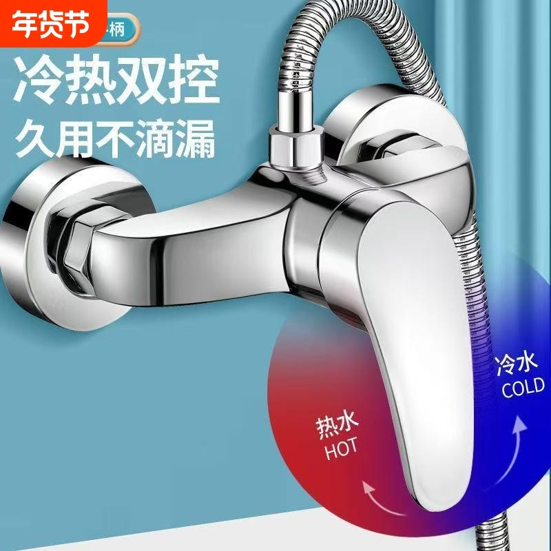全铜淋浴水龙头冷热混水阀浴室三联混合阀浴缸热水器简易花洒套装