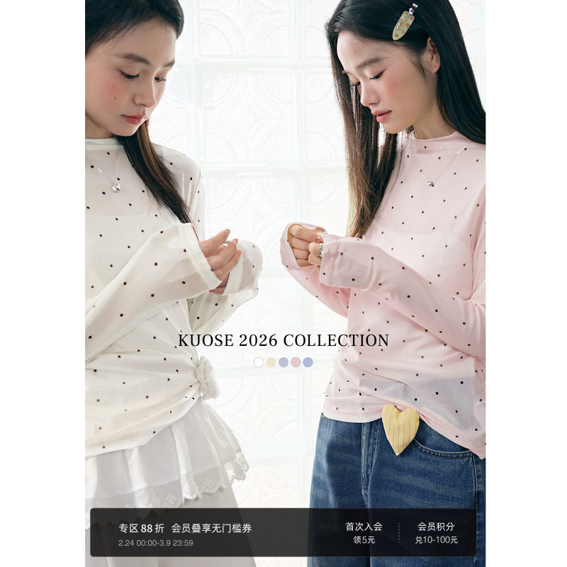 阔色白色波点网纱内搭长袖t恤26春季叠穿搭配新款女打底衫上衣秋
