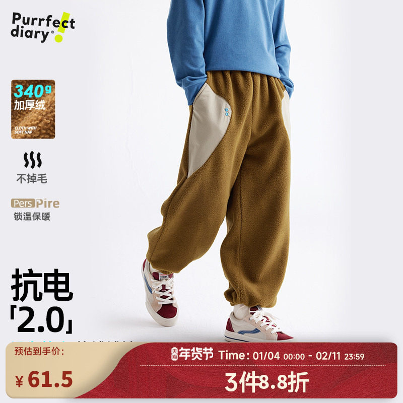 Q21【中暖】懒人卫裤儿童裤子男女童秋冬加绒保暖长裤运动束脚裤