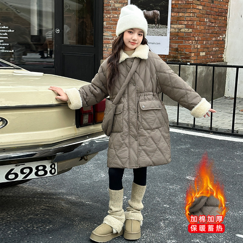 女童秋冬加绒外套2025新款洋气女大童冬装加厚中长款棉衣儿童棉服