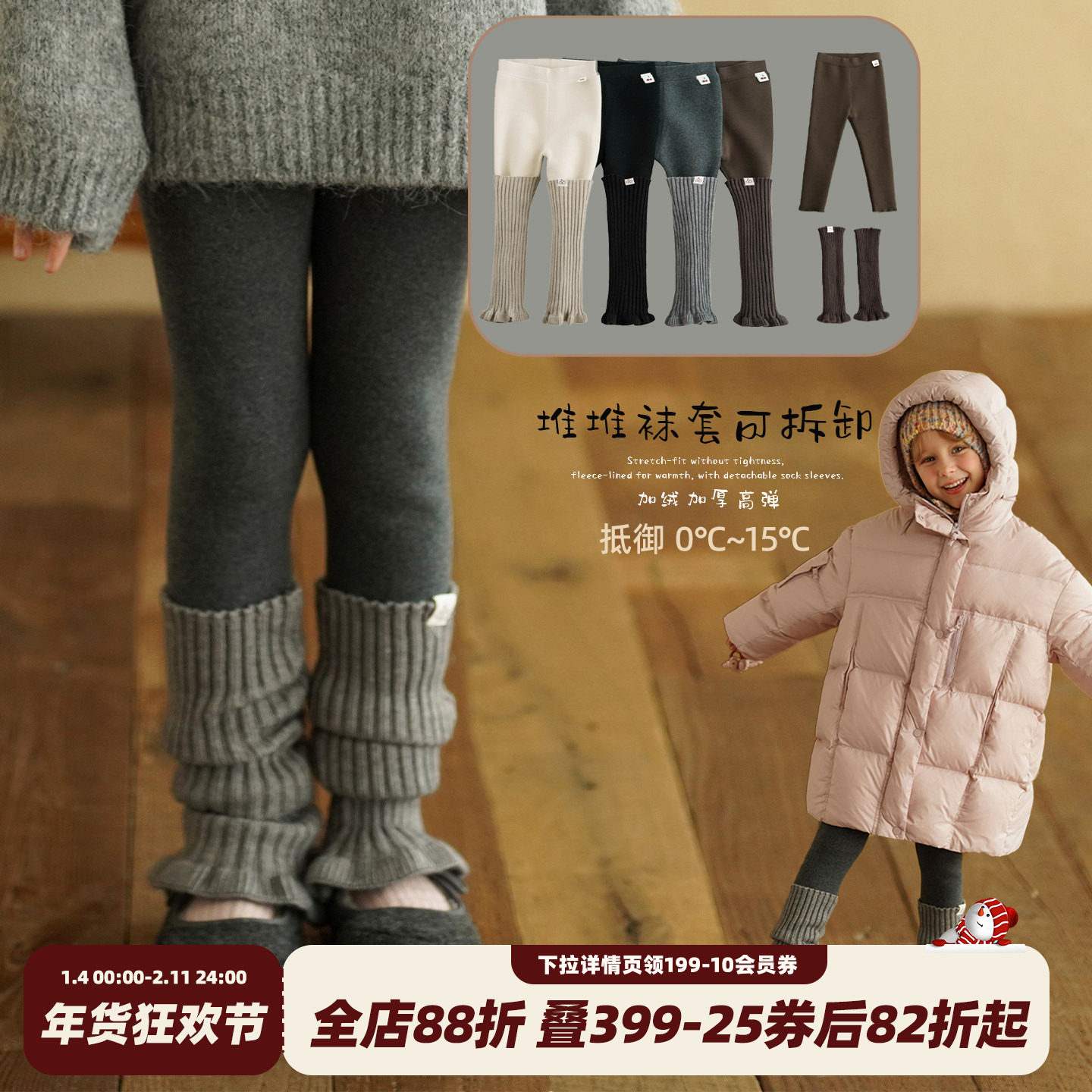 砚台家童装女童秋冬加绒打底裤女宝宝冬装保暖加厚堆堆袜外穿裤子