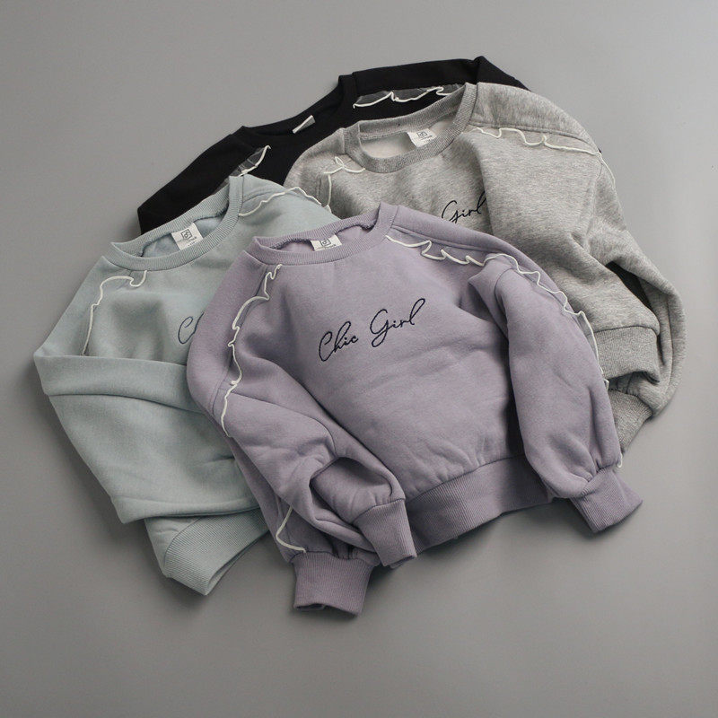 日系新款女童秋冬加绒保暖卫衣洋气高腰款荷叶边套头上衣100-160