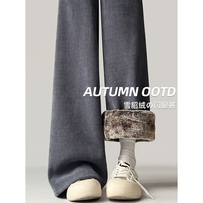 女童秋冬加绒裤子2025新款儿童洋气加厚阔腿裤中大童一体绒直筒裤
