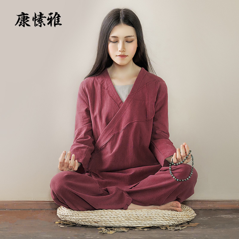 康愫雅居士服女春秋冬禅修服棉麻瑜伽服套装宽松禅意瑜珈打坐禅服