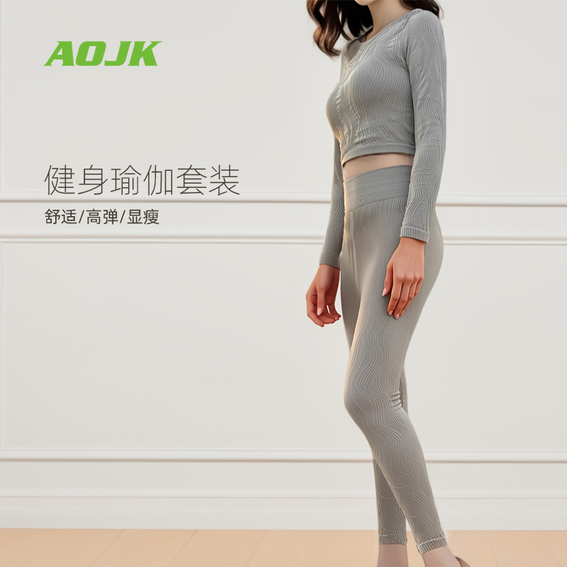 秋冬瑜伽服套装普拉提无缝针织健身套装长裤短款上衣长袖弹力修身