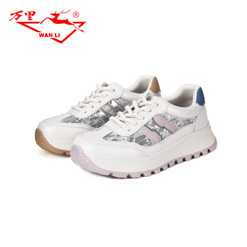 万里新款休闲单鞋系带运动鞋时尚厚底女鞋百搭圆头平底鞋BET2265