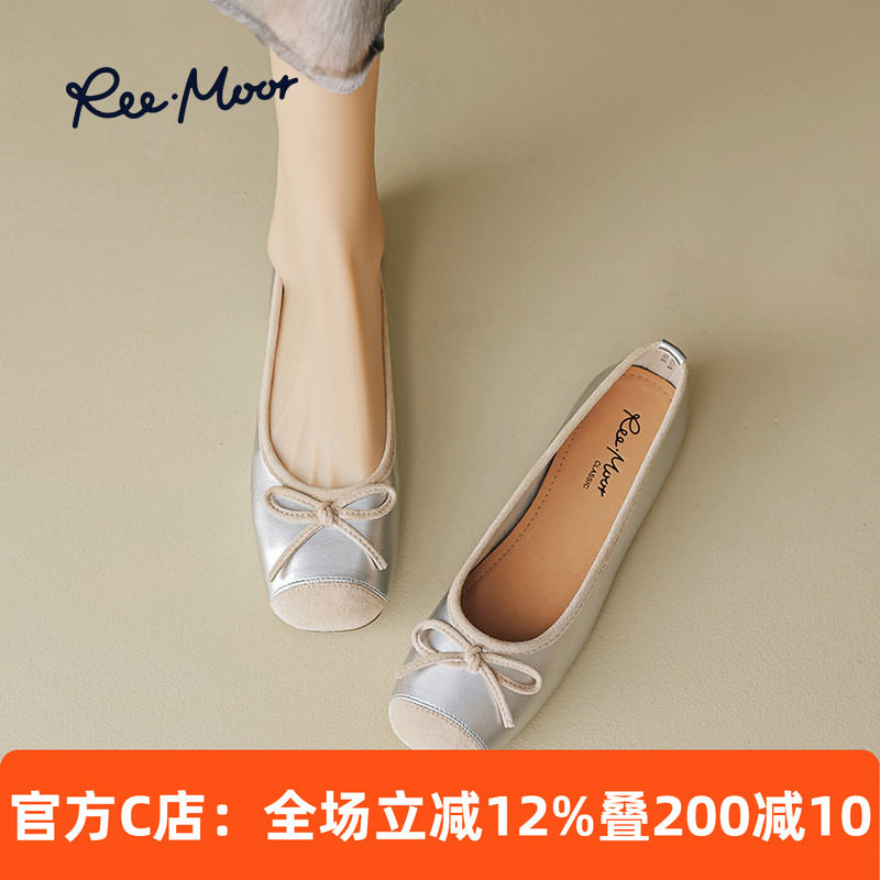 REEMOOR睿慕小香风蛋卷鞋2026春新款圆头平底鞋蝴蝶结浅口单鞋女