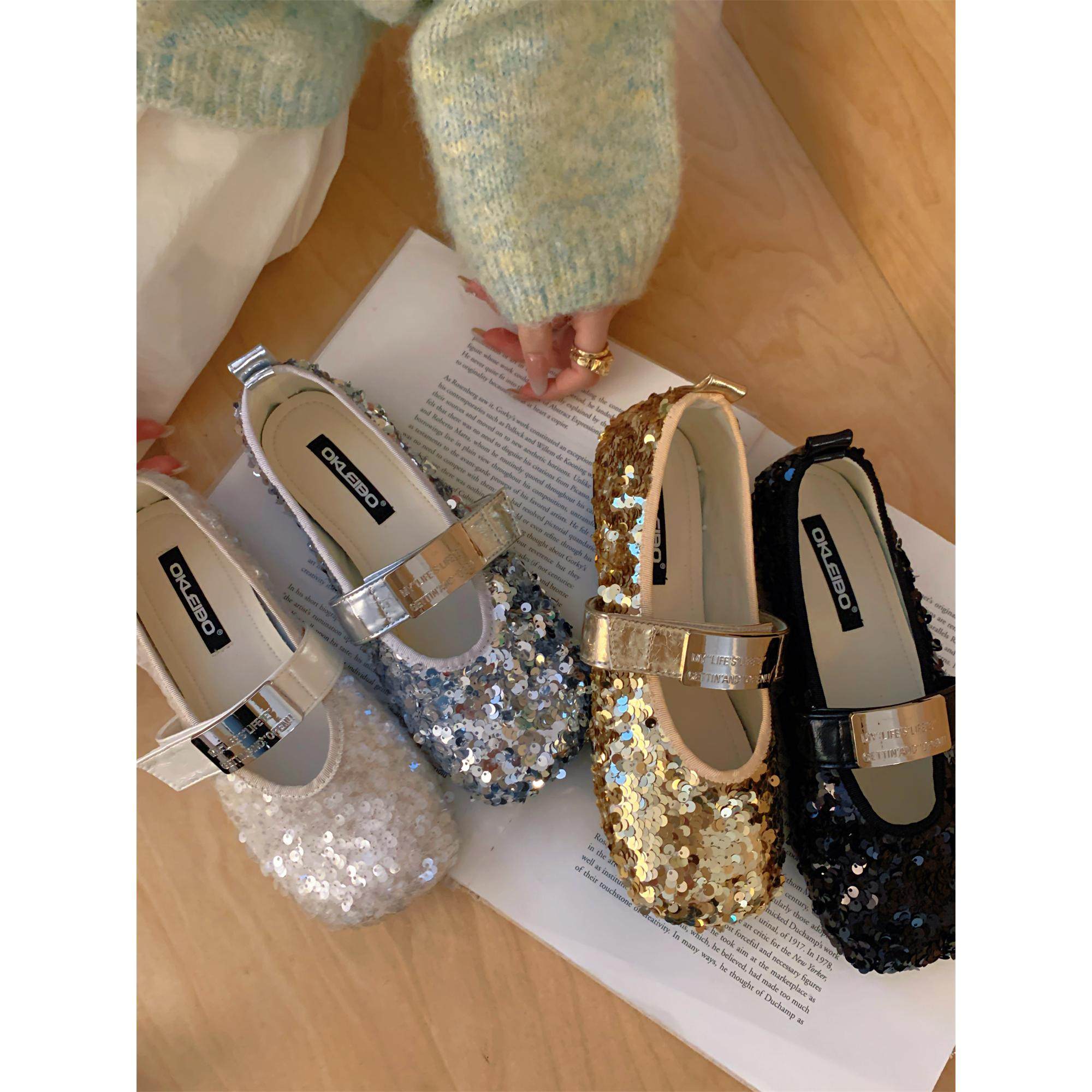 亮片玛丽珍单鞋女鞋子2026春秋圆头软底亮晶晶芭蕾舞鞋圆头平底鞋