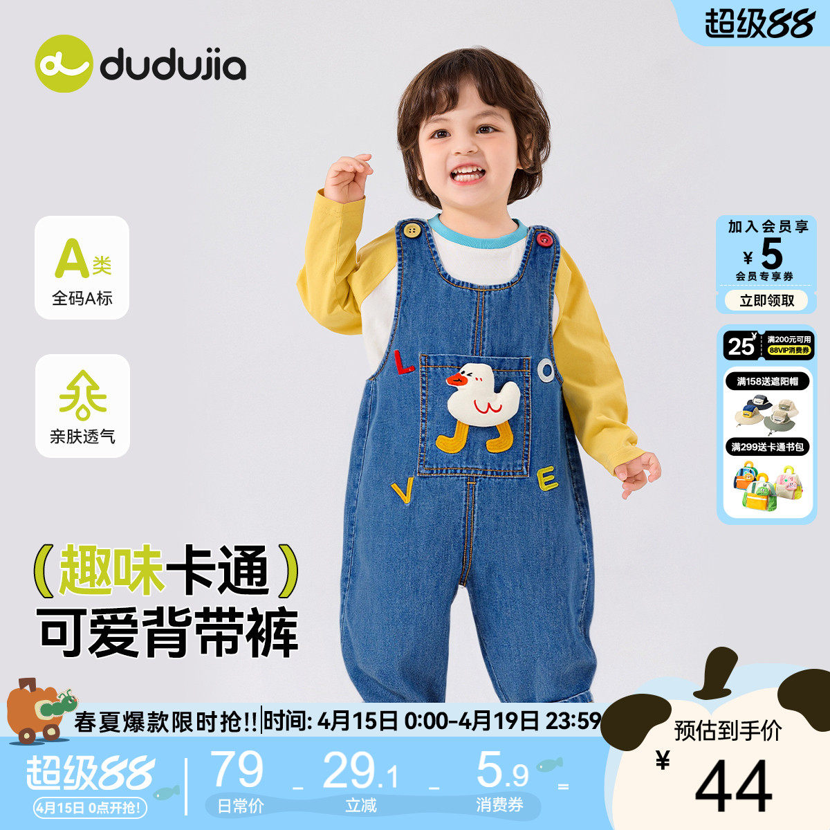 嘟嘟家宝宝背带裤春秋男童裤子儿童牛仔裤洋气春季女童童装可爱新