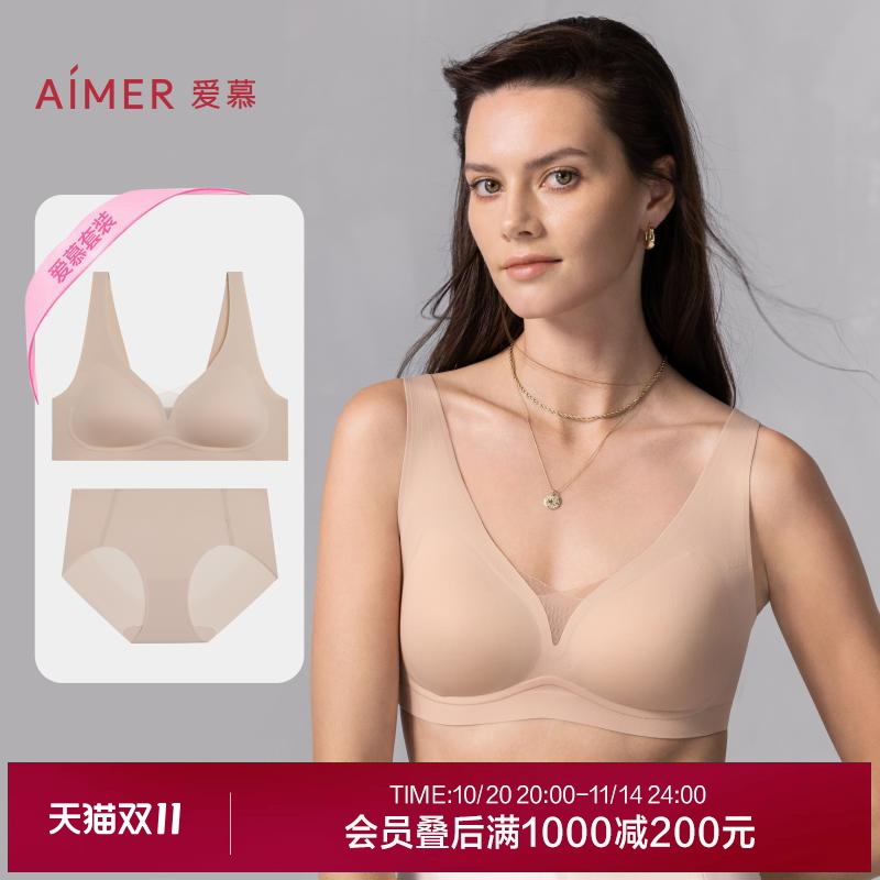 爱慕·CHUANG明动6内衣女25秋冬V领无钢圈薄透气文胸内裤套装