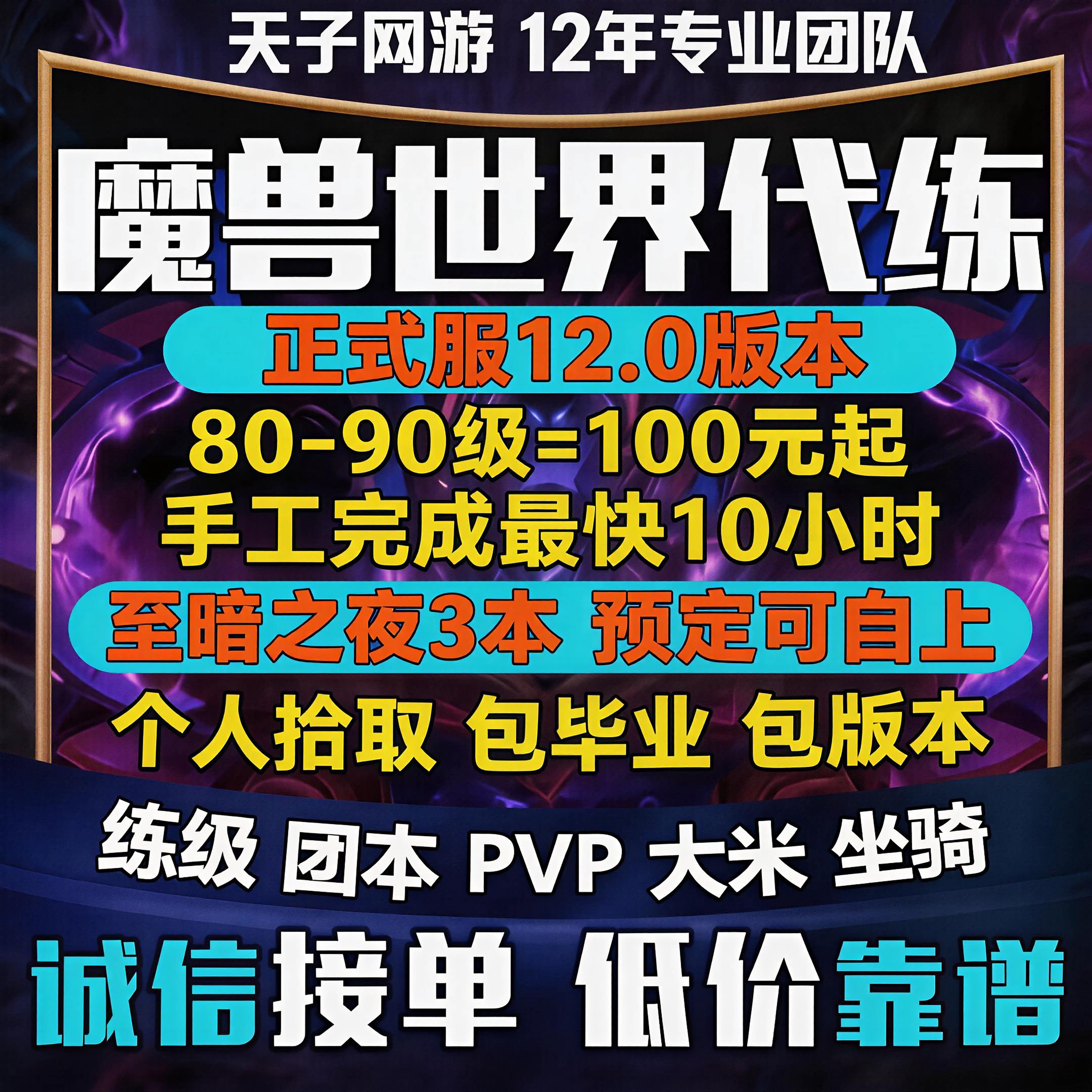 【首单免费】魔兽世界代练打升级正式服H团本M坐骑怀旧时光大秘境
