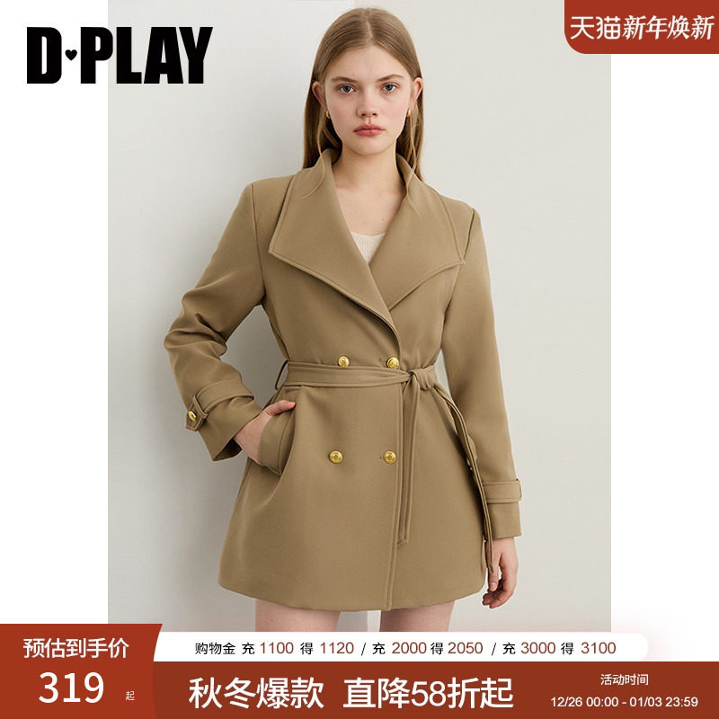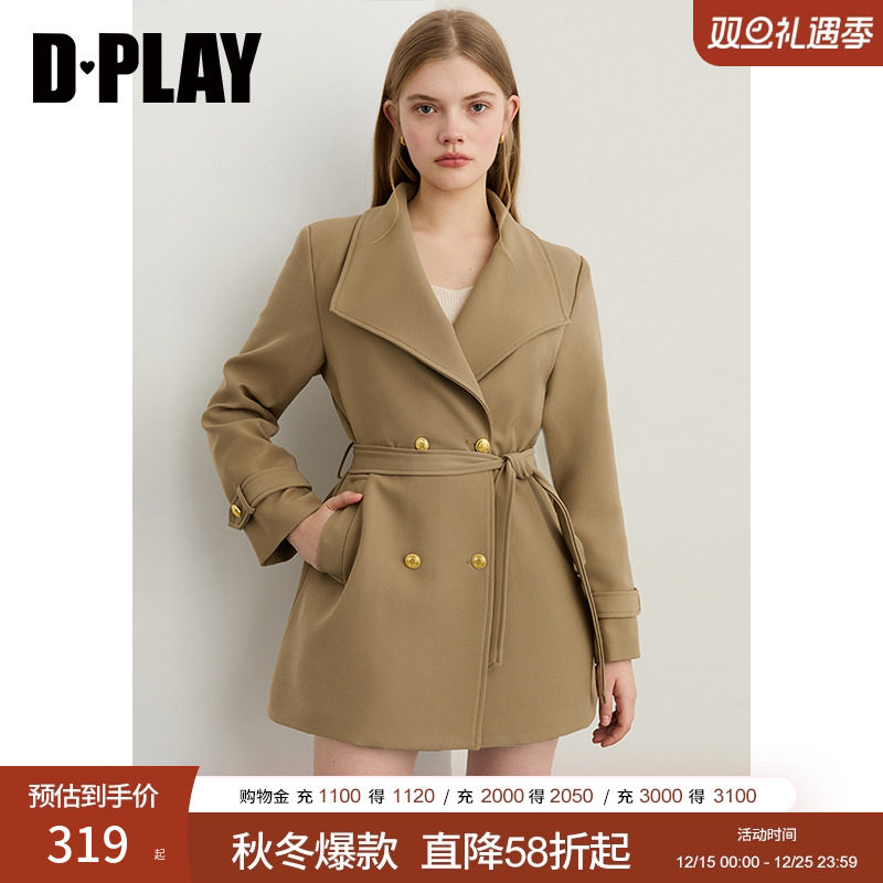 DPLAY2025年秋季新款卡其色风衣外套女好看流行大气短款翻领大衣