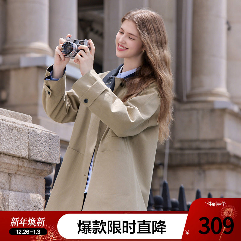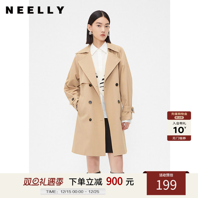 NEELLY纳俪商场同款卡其色中长款风衣女经典简约高级感秋大衣外套