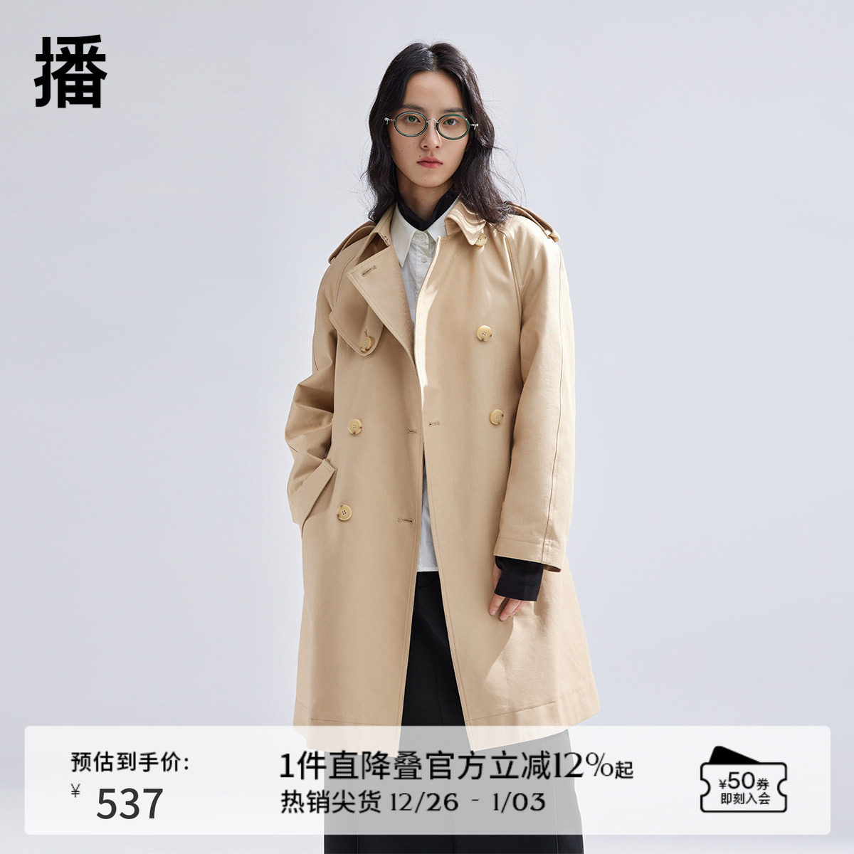 pusumede 曼城旧事 卡其色中长款风衣外套女高级感廓形气质大衣