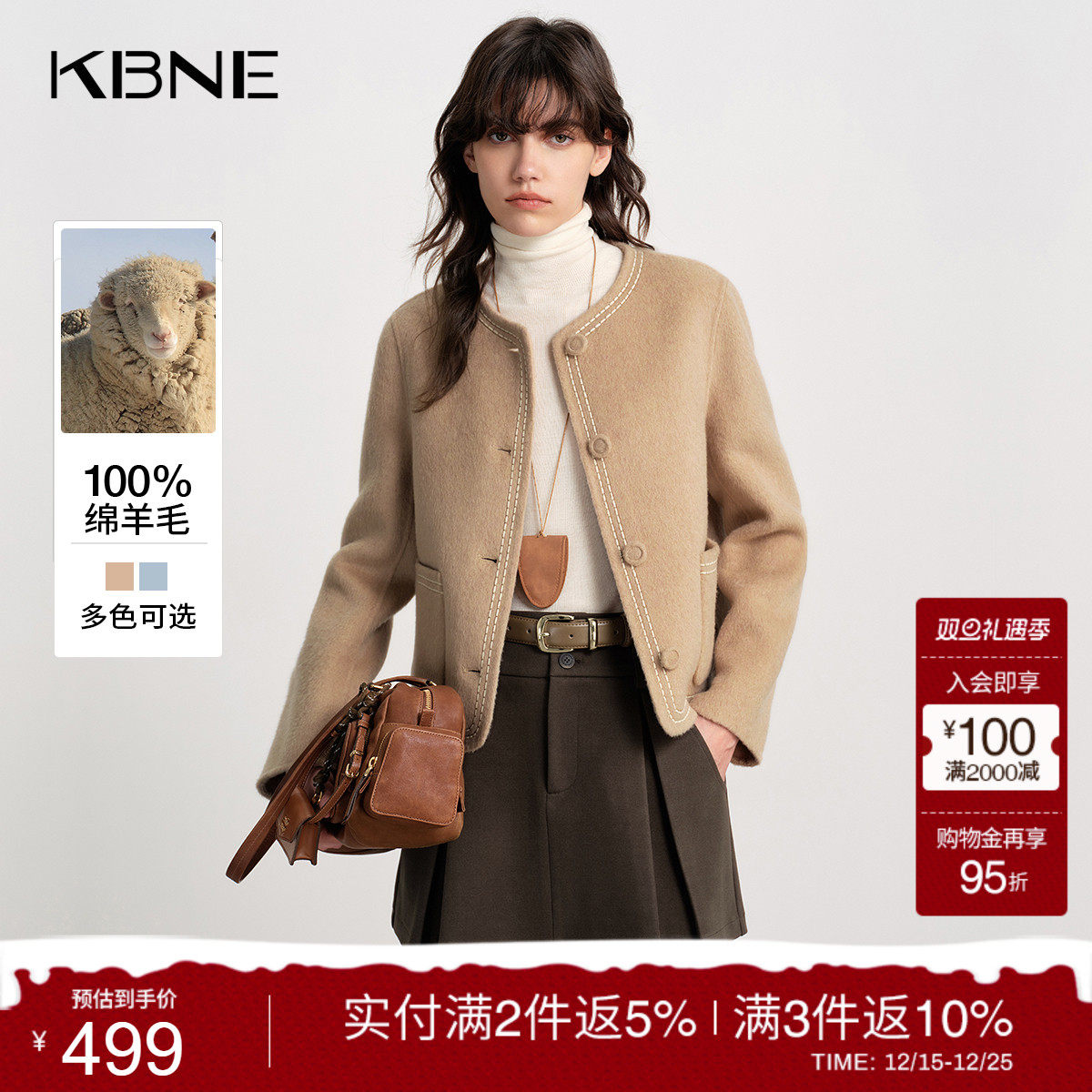 KBNE学院短款圆领撞色呢子外套女2025冬季新款卡其色富家千金大衣