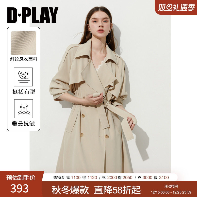 DPLAY2026年春季新款卡其色风衣外套女独特大气好看气质长款大衣