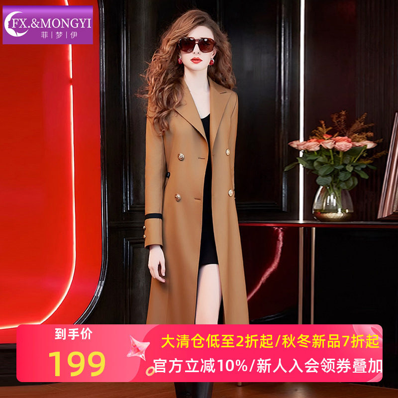 菲梦伊卡其色风衣外套女秋冬季英伦风时尚立体版型修身中长款大衣