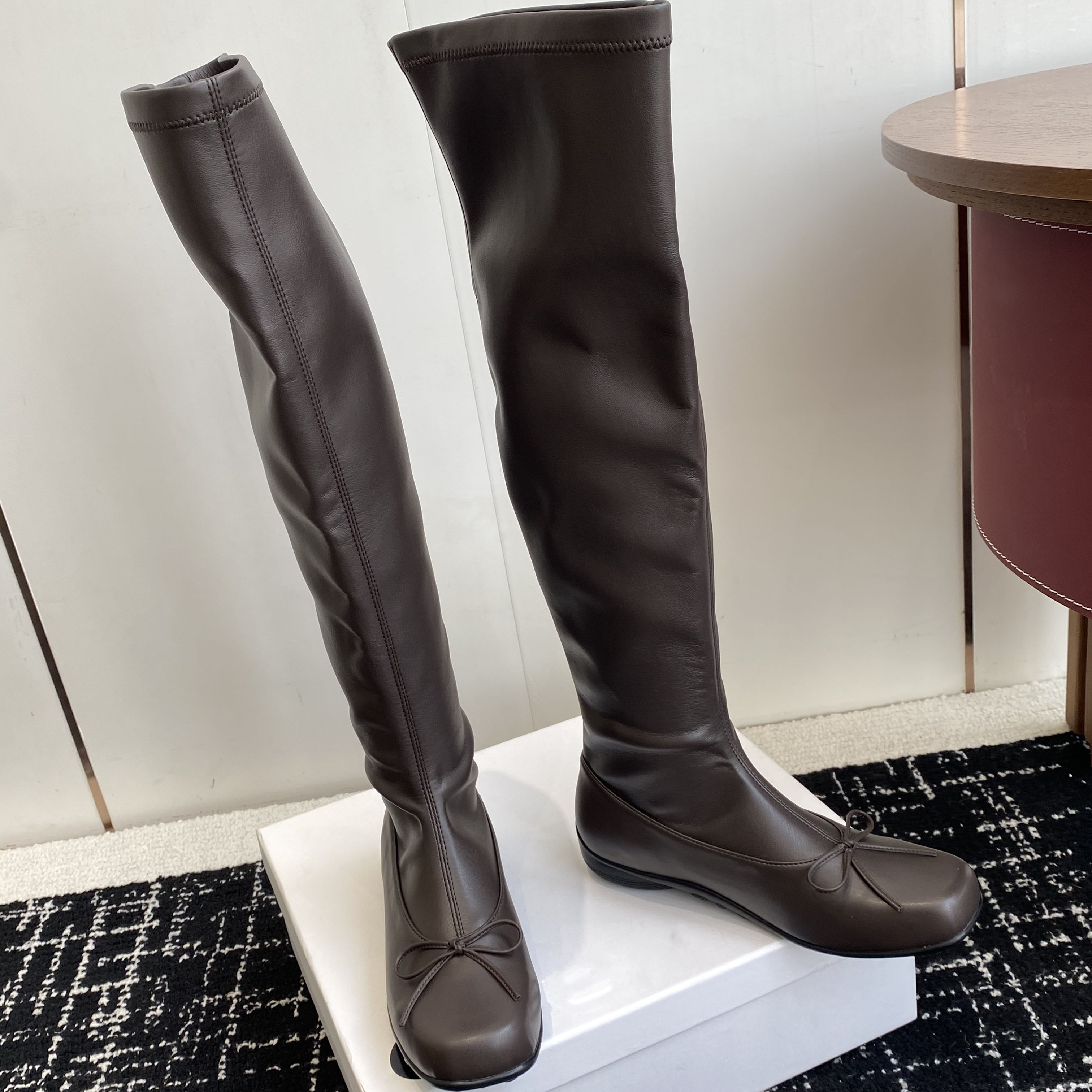 高定真皮2025年秋冬新款方头蝴蝶结高筒弹力靴女过膝长靴瘦瘦靴子