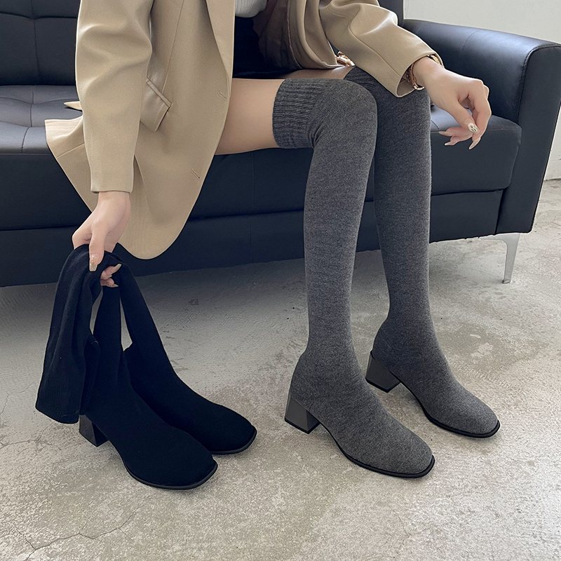 贝贝女过膝长靴女2025秋季新款袜靴粗跟弹力袜靴瘦瘦针织长筒靴