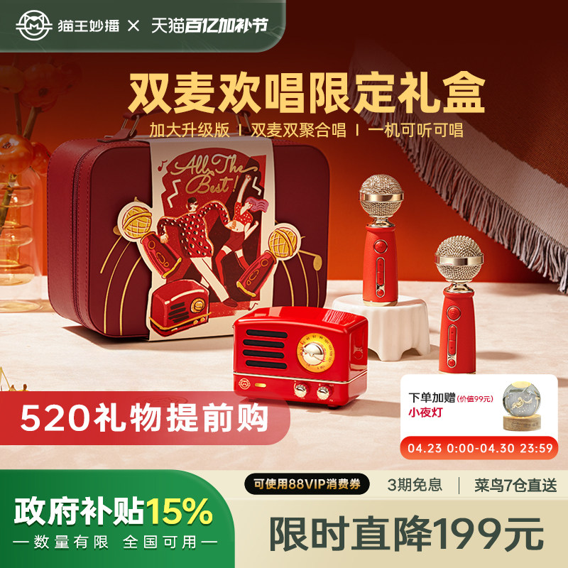 【新年礼盒】猫王音响小王子OTR欢唱双麦克风话筒一体K歌圣诞礼物