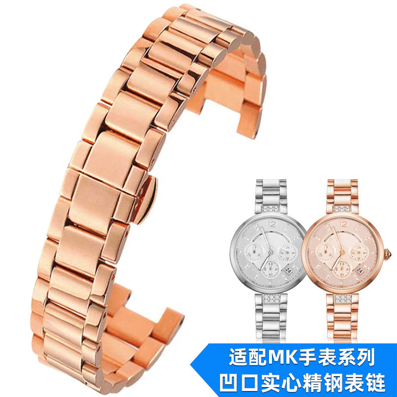 凹口精钢手表带适配MK三眼MK6985/6986 MK2425/2433表链原款配件