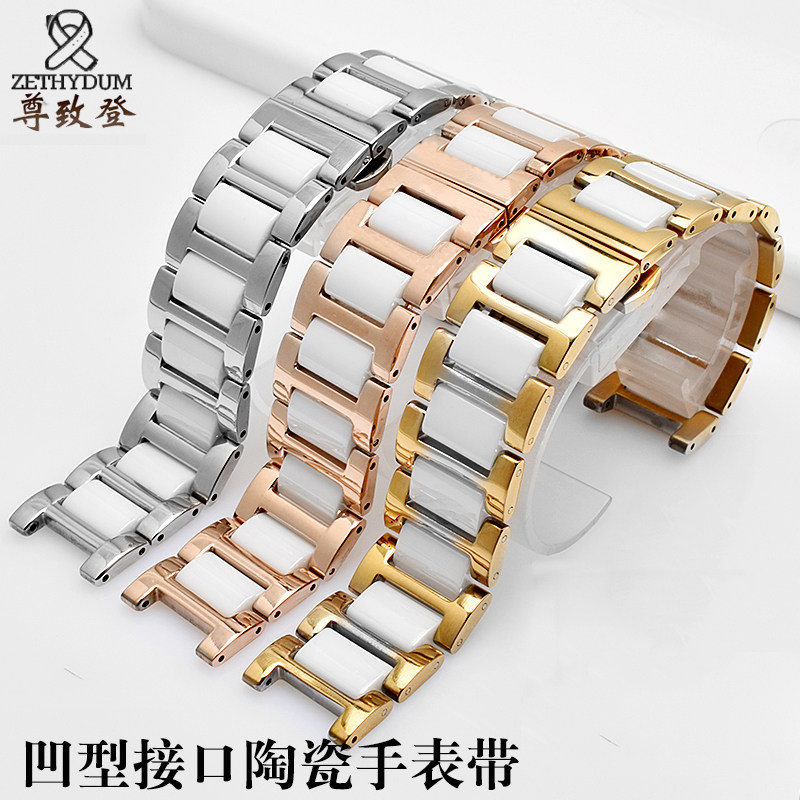 凹凸口陶瓷不锈钢手表带适配飞亚达心弦 天王 MK女手表链14 16mm