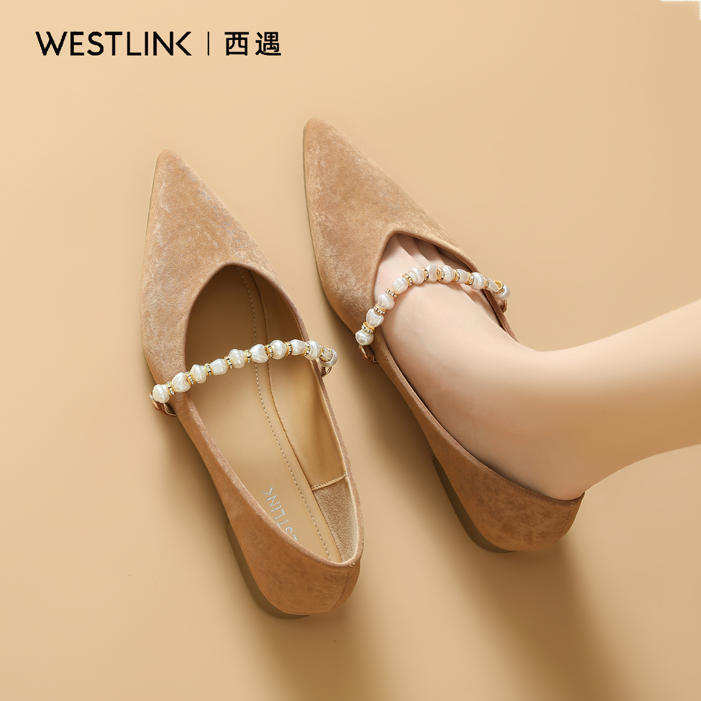 西遇法式尖头浅口单鞋女2025秋季新款珍珠高级感配裙子平底瓢鞋A