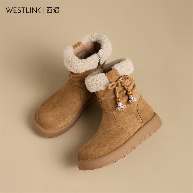 西遇厚底雪地靴女款冬季2025新款勃肯短靴加绒保暖棉鞋毛毛鞋子TQ