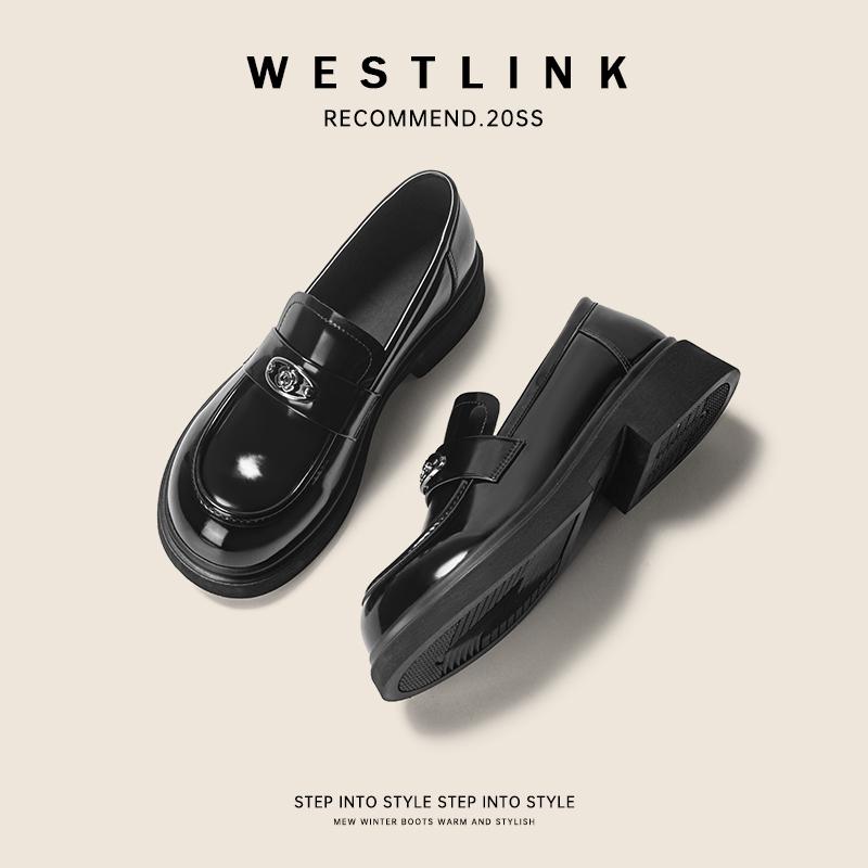 西遇粗跟乐福鞋女2025新款一脚蹬黑色jk小皮鞋巨好看配裙子单鞋TQ
