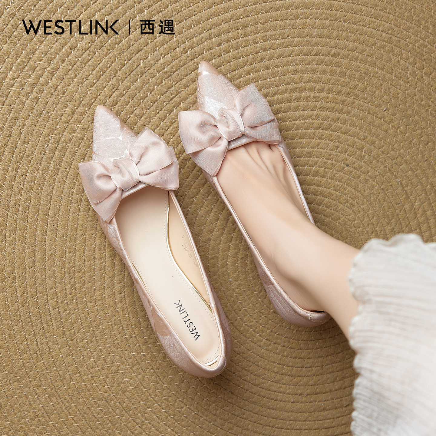 西遇平底单鞋女2025秋季新款香槟色尖头气质配裙子绝美瓢鞋女鞋A