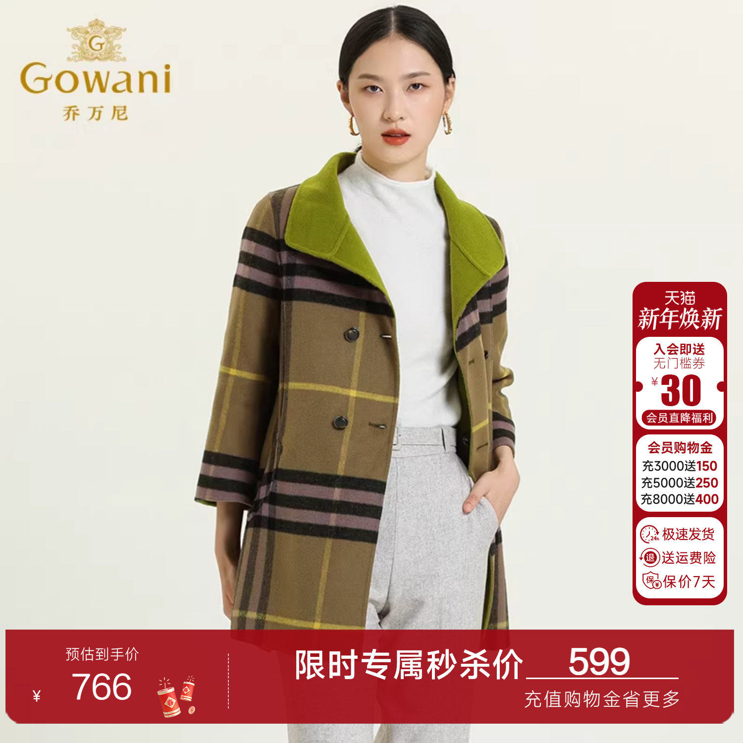 断码清仓乔妮塔女装2025秋冬羊毛千鸟格子零羊绒双面呢子大衣外套