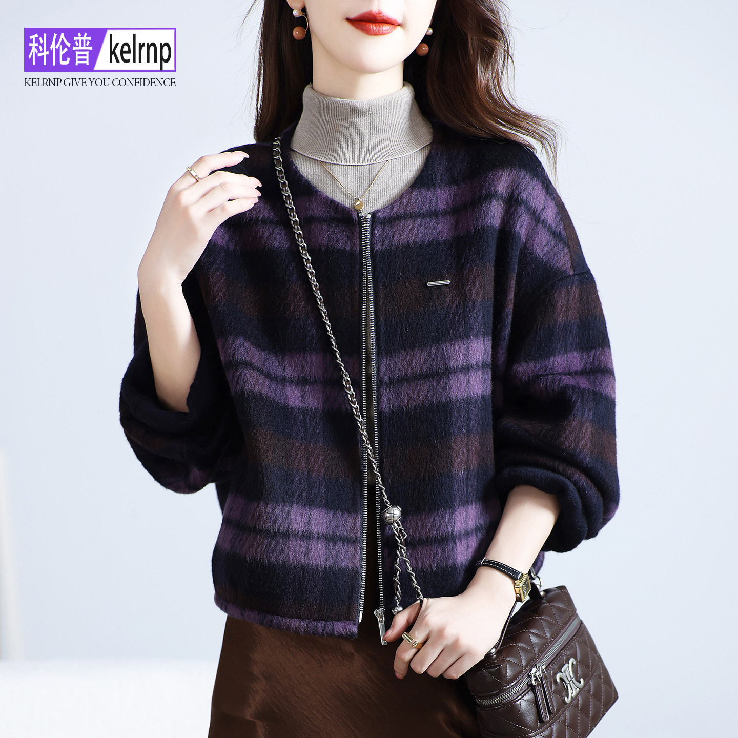 双面羊绒大衣女2025秋冬新短款格子印花小个子呢子羊驼羊毛呢外套