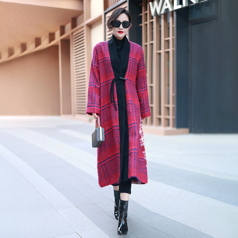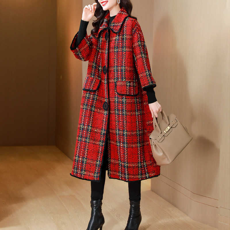 红色格子双面呢大衣女气质复古中年妈妈羊毛呢子外套2023秋冬新款