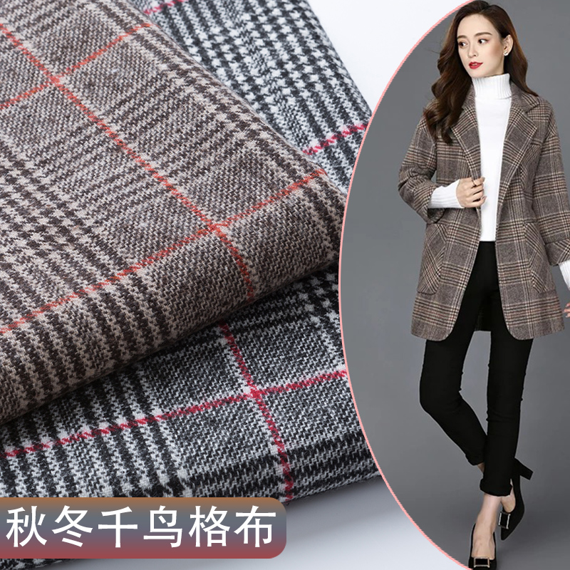 秋冬加厚千鸟格子布料英伦风西装裤呢子大衣马甲羊毛服装粗纺面料