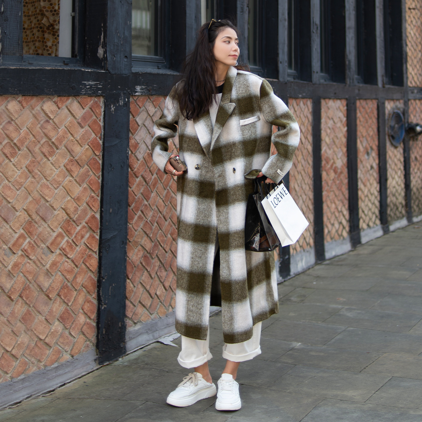 2026春季新款高档复古格子羊毛呢子大衣女宽松大码中长款风衣外套
