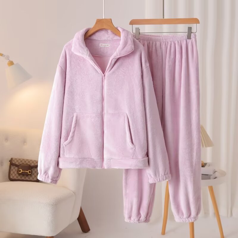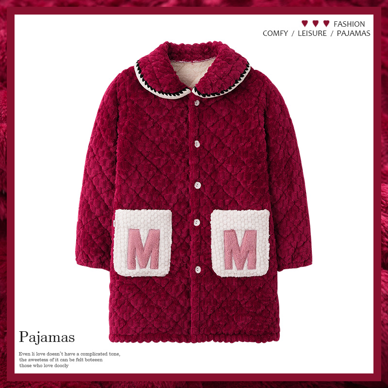 - 冬季睡衣女珊瑚绒加厚