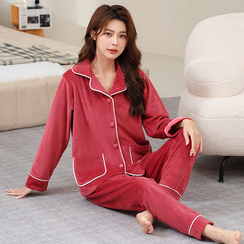 - 冬季睡衣女珊瑚绒加厚保暖
