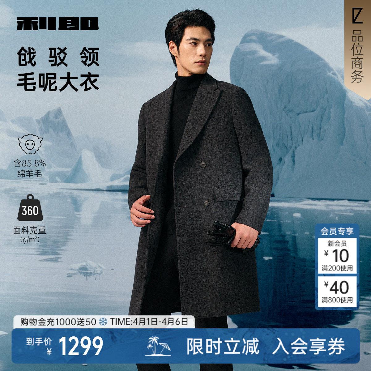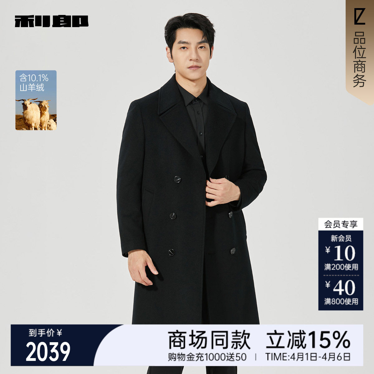【商场同款】利郎官方毛呢大衣男中长款双排扣25冬外套25DYR1611Y