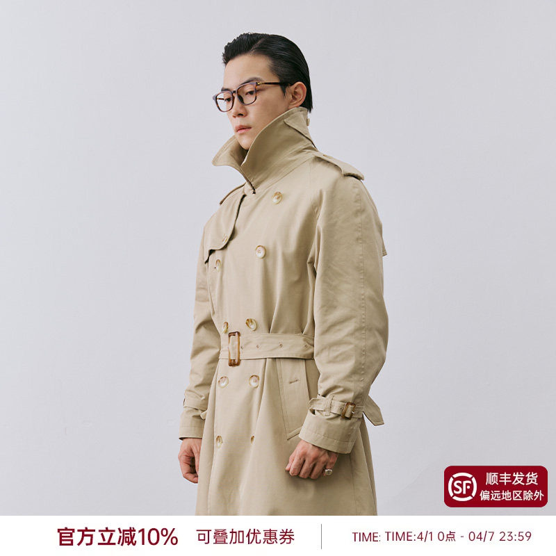 SATCHI沙驰男装男士战壕风衣春秋中长款英伦风切尔西军大衣外套