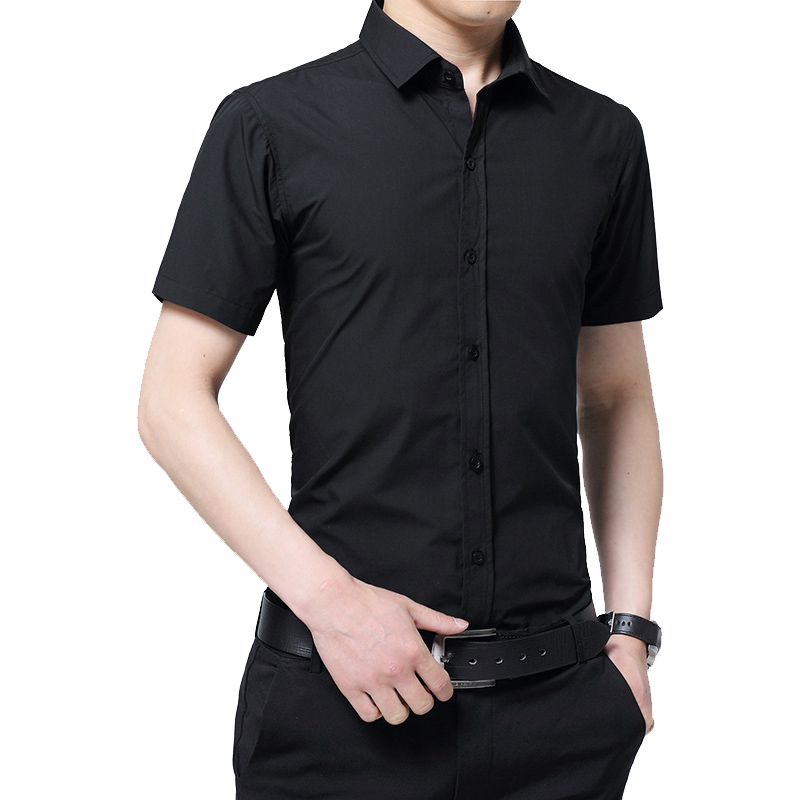 夏装男士纯色短袖衬衫修身韩版商务休闲职业黑色衬衣半袖免烫寸衣