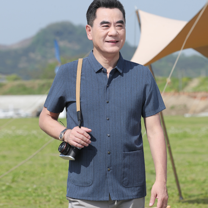 中老年人夏装男装爸爸短袖衬衫爷爷薄款衬衣老人夏天衣服60-70岁