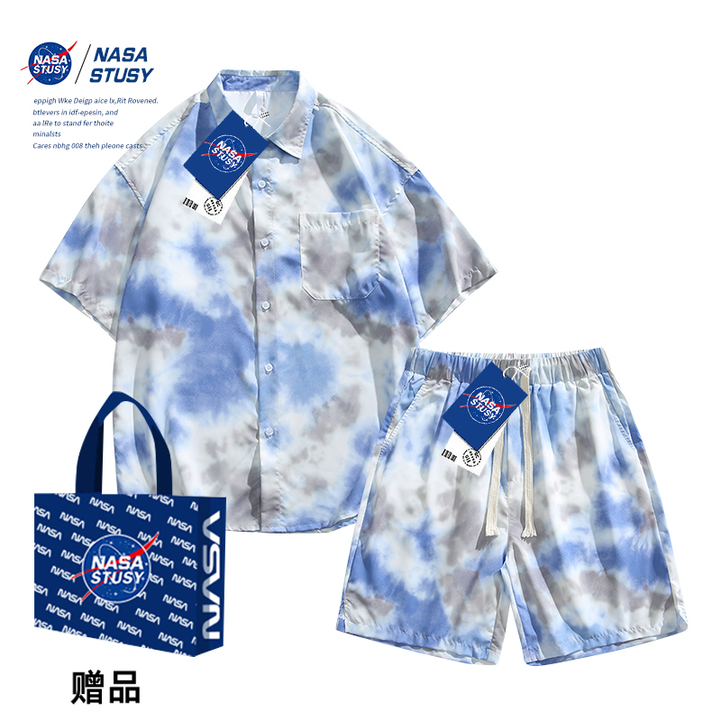 NASA STUSY美式复古2025新款夏装男款衬衣男士痞帅高级感短袖衬衫