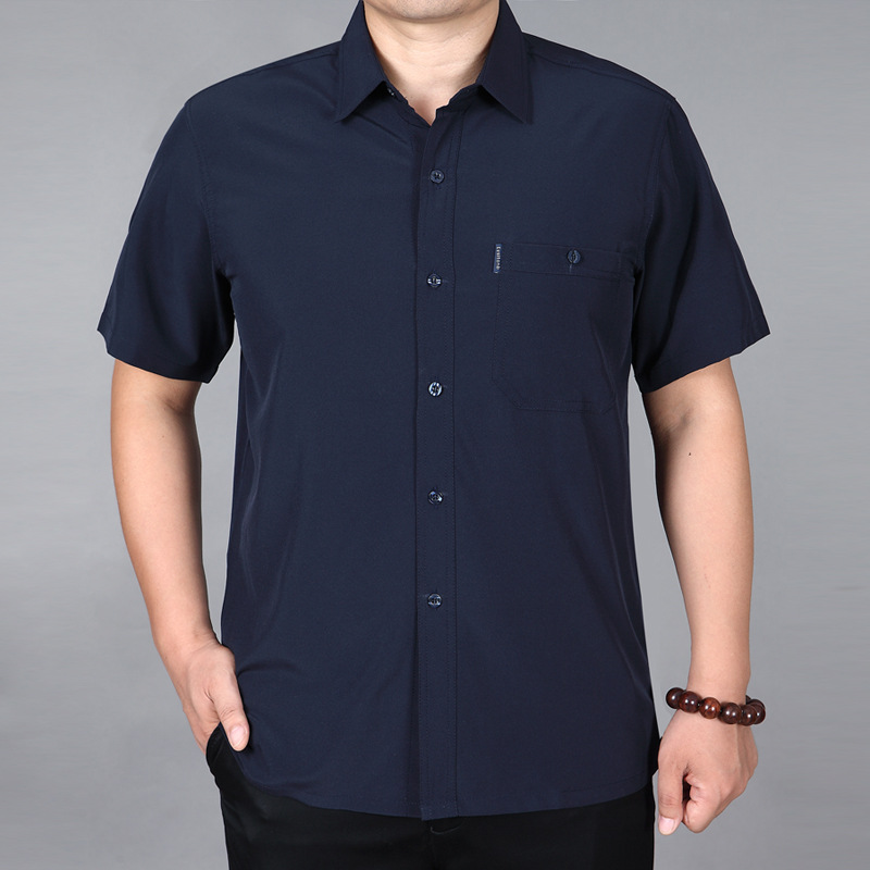 中年男士衬衫夏季中老年人冰丝衬衣短袖薄款爸爸夏装宽松爷爷衣服