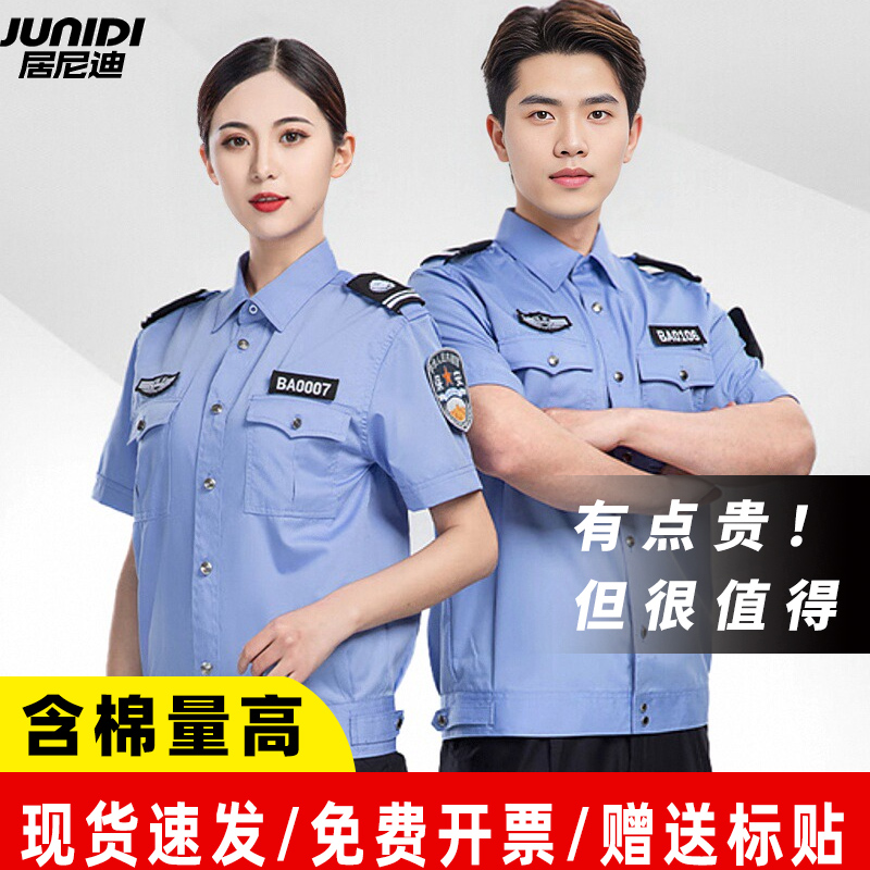 保安工作服套装制服夏装男纯棉夏季短袖春秋安保蓝色衬衣保安服女