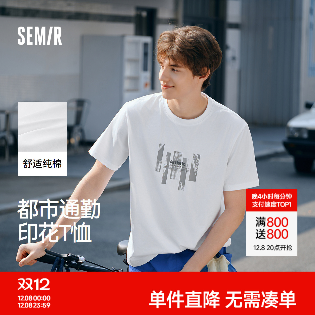 森柔棉液氮保型森马短袖T恤男纯棉夏装都市通勤印花正肩上衣时尚