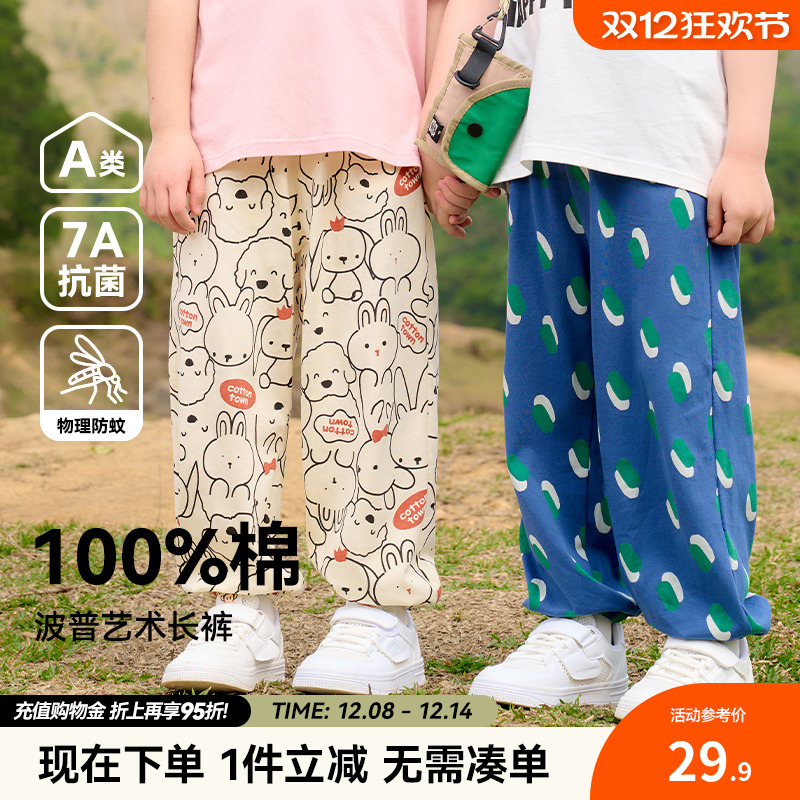 【100%棉+抗菌】棉花堂儿童裤子夏装男童长裤女童童装宝宝防蚊裤