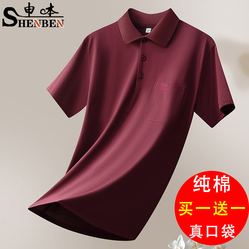 申本爸爸夏装男士短袖t恤中老年人polo衫纯棉口袋体恤父亲节礼物