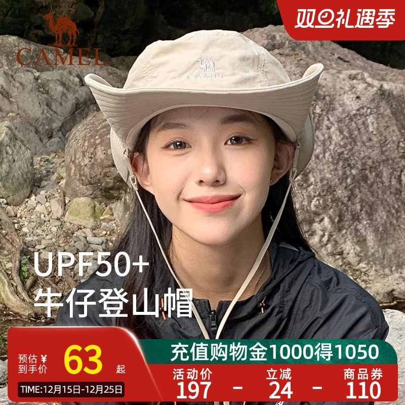 骆驼户外防晒渔夫帽女2025夏季遮阳帽登山沙滩太阳钓鱼牛仔帽